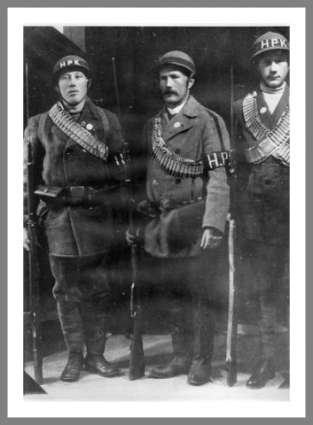 Rødgardister Rødgardister fra Helsingfors Kompagni A med svenske Mauser-rifler. I 1920'erne skilte den regulære finske hær sig af med tidligere rødgardister. De blev ikke accepteret i nationens væbnede styrker før 1940. Ukendt fotograf © Krigsmuseet, Stockholm