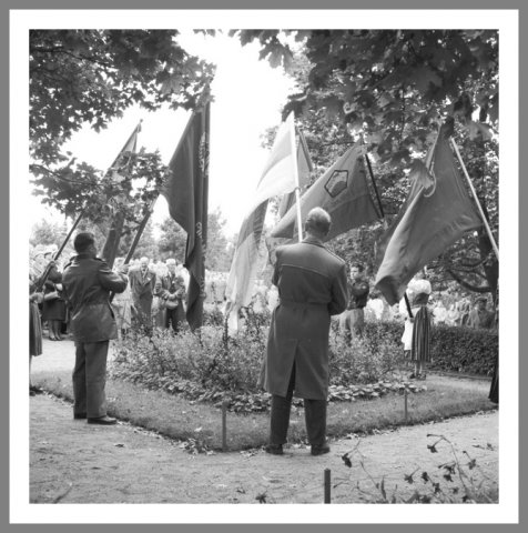 Mindehøjtidelighed En mindeceremoni i 1959 for borgerkrigen. Den sejrende hvide historiefortælling om frihedskrigen gav anledning til mindeceremonier, krigsmonumenter og begravelsespladser. kendt fotograf © The Finnish Labour Archives, Helsinki