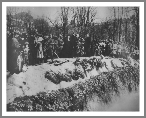 Begravelse Begravelse af hvide krigsdeltagere i Helsinki (Helsingfors). Ukendt fotograf © Krigsmuseet, Helsinki