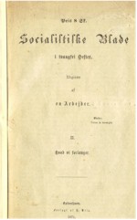 I sommeren 1871 udsendte en anonym arbejder to små pjecer med titlen "Socialistiske Blade". Heri kunne man læse et forsvar til fordel for Pariserkommunen og en opfordring til danske arbejdere om at organisere sig i fagforeninger. Med fagforeninger som udgangspunkt kunne der dannes en forening der også kunne varetage politiske opgaver. Opgaven var ifølge forfatteren enkel, men krævede mod og initiativ. Arbejderne havde fælles interesser. Slog de sig sammen fag for fag kunne de gennem sammenhold forhandle med arbejdgiveren for at få forbedret deres løn, arbejdstid og arbejdsforhold. Ville arbejdsgiveren ikke forhandle kunne de anvende strejken og nedlægge arbejdet for først at genoptage det, når arbejdsgiveren havde givet efter.