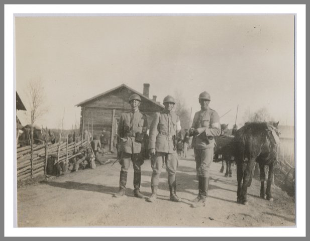 Der findes ikke fotos af de danske frivillige i aktion, men de indgik typisk i kompanier med andre frivillige - som her de svenske, der udgjorde majoriteten af de skandinaviske støtter til de hvide.