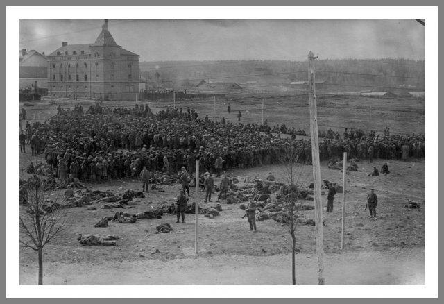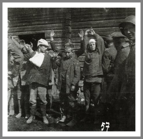 Fangne russere i Terijoki. I årene efter 1918 brugte de hvide russernes tilstedeværelse til at retfærdiggøre krigen som en frihedskrig imod en ydre undertrykker.