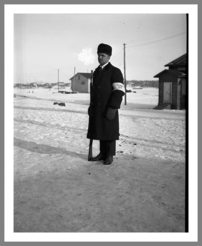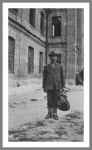 En frifundet arrestant ved hovedvagthuset i Riihimäki, 1918.