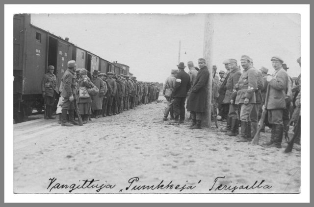 Tilfangetagne røde på jernbanestationen i Terijoki, ved fronten på den Karelske Næs i 1918.