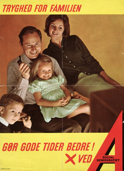 Socialdemokratiet gik til valg i 1960 under parolen "Gør gode tider bedre" og netop plakaten med den pæne familie foran TV er i tidens løb gået hen og blevet selve symbolet på velfærdsstaten.