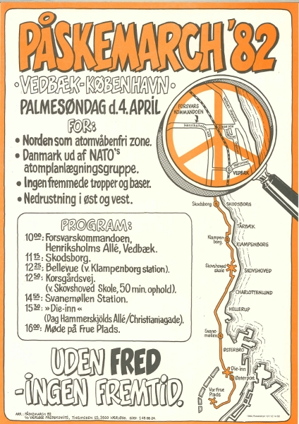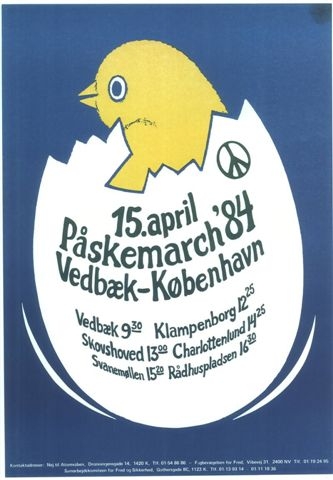 10.000 mennesker deltog i påskemarchen 1982 fra Vedbæk til København. Ruten gik forbi både den amerikanske og sovjetiske ambassade, hvor deltagerne lagde sig på asfalten og lavede en ”die in” demonstration. I påsken 1984 gik marchen igen fra Forsvarskommandoen i Vedbæk til København. Der var underholdning langs ruten musik og gøgl og ”Idræt for fred” fik deltagerne til at lave knæbøjninger og ”Kvinder for fred” havde sunget undervejs.