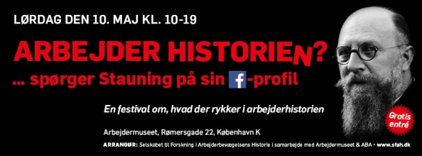 SFAH arrangerer i samarbejde med Arbejdermuseet en arbejderhistoriefestival lørdag d. 10. maj. Her vil vi gennem foredrag, workshops, debatter, musik, film, byvandringer og meget mere sætte arbejderhistorien til debat. Temaerne er bl.a. den danske model, arbejderkultur, den politiske arbejder, arbejderbevægelsens udfordringer og så stiller vi spørgsmålet – hvem er arbejderne egentlig?
