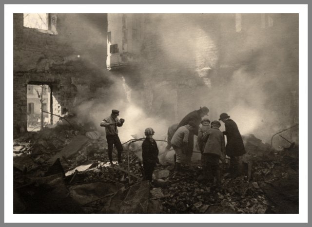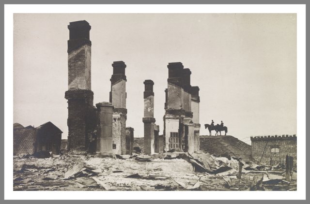 Åbo Garnisonen i Åbo (Turku) efter en brand i april 1918. Lokale beboere leder efter dåsemad. Ukendt fotograf © Vapriikki Photo Archives, Tampere