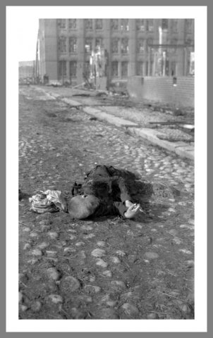 Tammerfors En død dreng på gaden kort efter den hvide erobring af Tammerfors (Tampere). Foto: formentlig jernbaneingeniør Oskar Sundberg © Vapriikki Photo Archives, Tampere