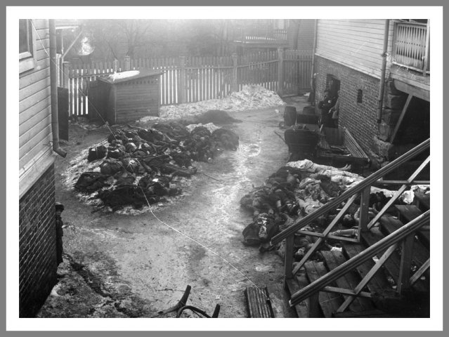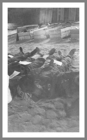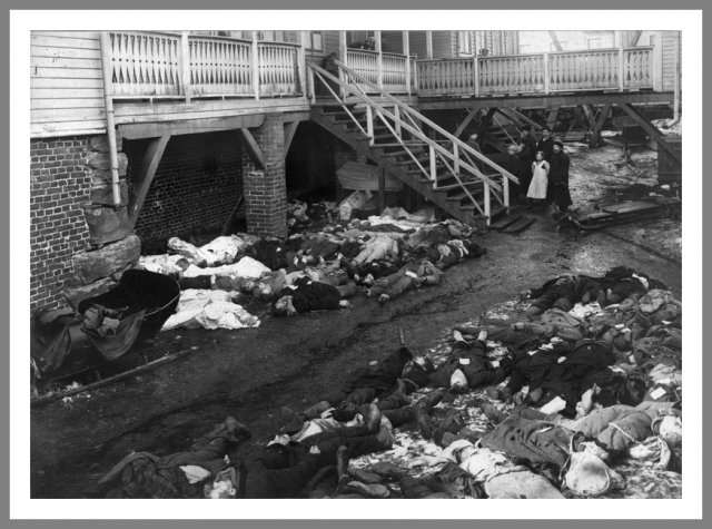 Døde rødgardister Lig samlet uden for Den Røde Gardes hospital efter slaget ved Tammerfors. Foto: Martta Terävä © Vapriikki Photo Archives, Tampere
