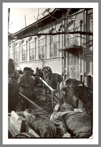 Krigsofre Ofre for krigen transporteres til kirkegården. Ukendt fotograf © Krigsmuseet, Helsink