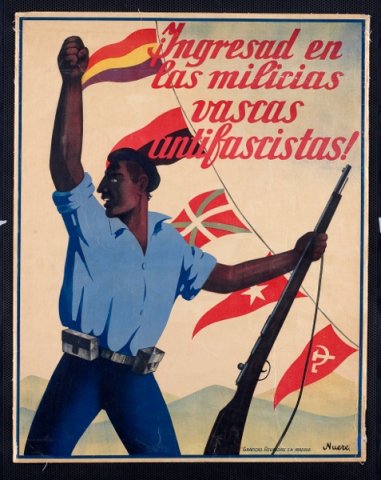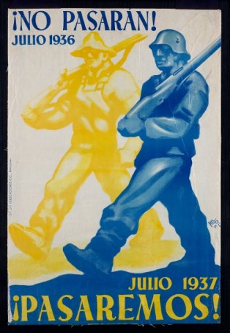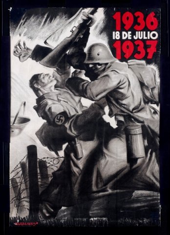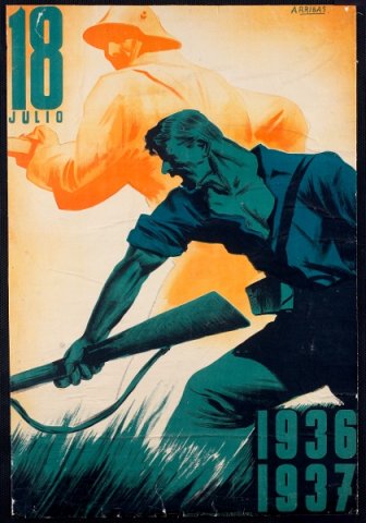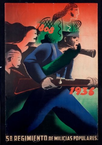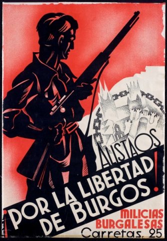Den spanske Borgerkrig var en 3 år lang og blodig krig mellem den demokratiske spanske republiks tilhængere og oprørske nationalister. Oprørerne fik hjælp fra de fascistiske regimer i Tyskland og Italien, mens den republikanske regering blev støttet af det gamle Sovjet og frivillige socialister fra mange lande. Republikken måtte overgive sig og 1. april 1939 erklærede oprørshæren med general Franco i spidsen krigen for vundet og dermed slut. Én af de frivillige var den unge socialdemokrat Egon Højland. Det er hans fortjeneste, at vi i dag har 25-30 originale plakater fra krigen. Overalt på husmure og lygtepæle, i civile og militære kontorer blev han mødt af plakater, hvis formål var at mobilisere, belære, oplyse og advare befolkningen. Unge ukendte såvel som berømte kunstnere, litografer og trykkere var fagligt organiserede og stillede sig til rådighed for sagen. Der blev lavet 1500-2000 forskellige af disse ”Soldater af papir og blæk”, flest i begyndelsen, men færre efterhånden som krigen skred frem, arbejdsforholdene forværredes og papir blev en mangelvare.