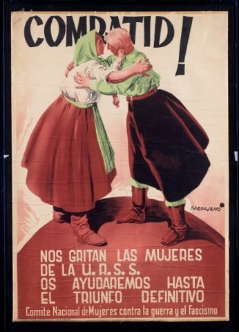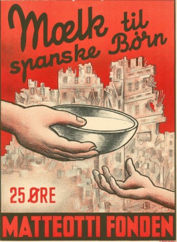 Krigen havde stor international bevågenhed og i de frivilliges hjemlande blev der arrangeret udstillinger og hjælpearbejde til fordel for krigens ofre. I dette arbejde fik plakaterne stor betydning. Egon Højland blev tidligt såret under kampene, men forsatte i brigaden efter en rekreation og vendte først tilbage til Danmark i 1938. Herhjemme drog han rundt og fortalte om sine oplevelser og samlede støtte til det stadig mere trængte spanske folk. P.s.: Han kom til at spille en helt anden rolle i for Arbejdermuseet & ABA. Som skiltemaler med eget grafisk værksted blev han leverandør af plakater, mærkater og transparenter til arbejderbevægelsens organisationer. Men hans helt stor genistreg var engang i 1970’erne at genoptrykke plakaten ”Stauning eller Kaos”. Nogen salgssucces blev det umiddelbart ikke, men da først Arbejdermuseet slog dørene op, kom der gang i efterspørgselen. Kilde bl.a.: Egon Højland (1916-98) afleverede sine papirer til ABA i begyndelsen af 1980’erne.
